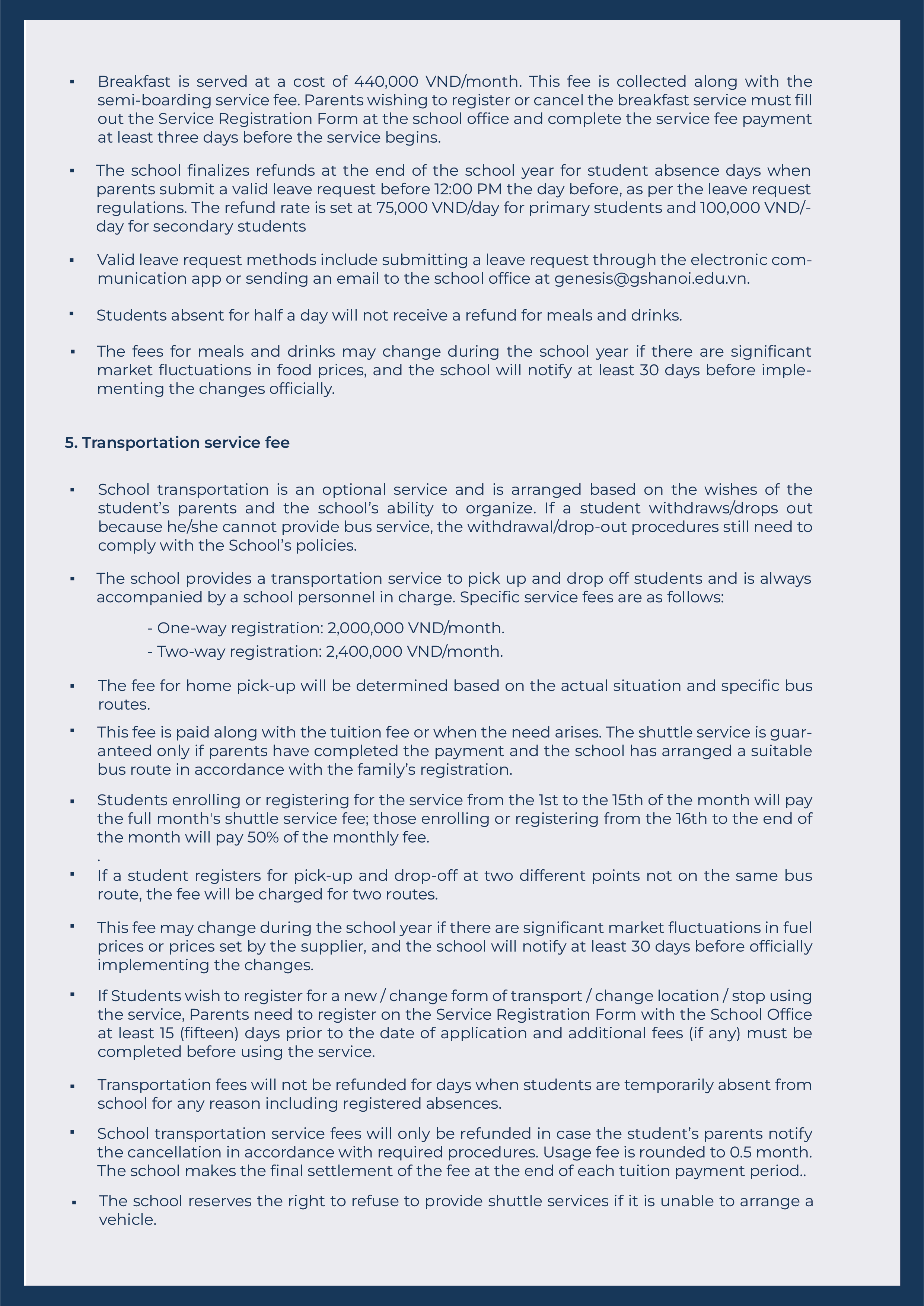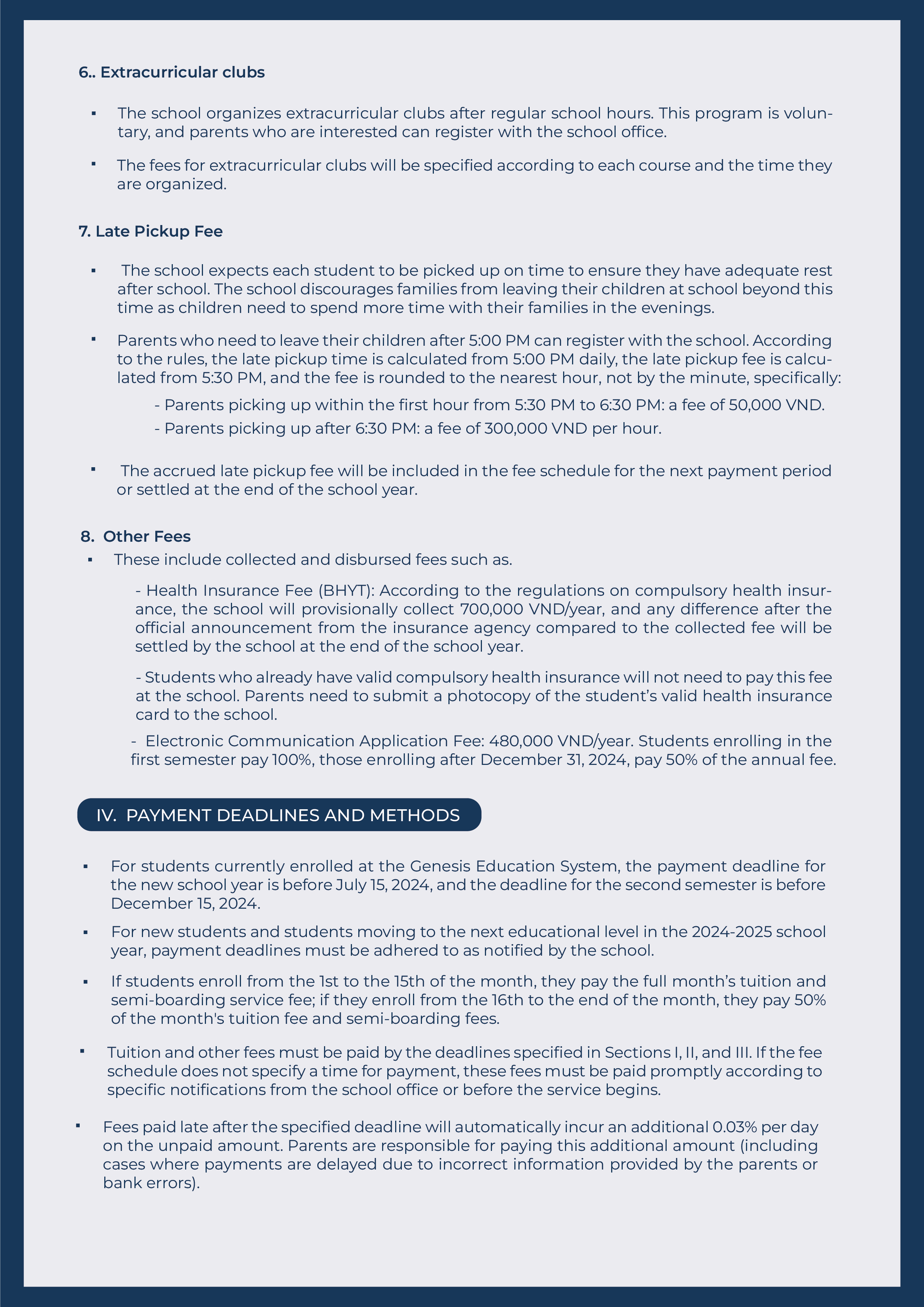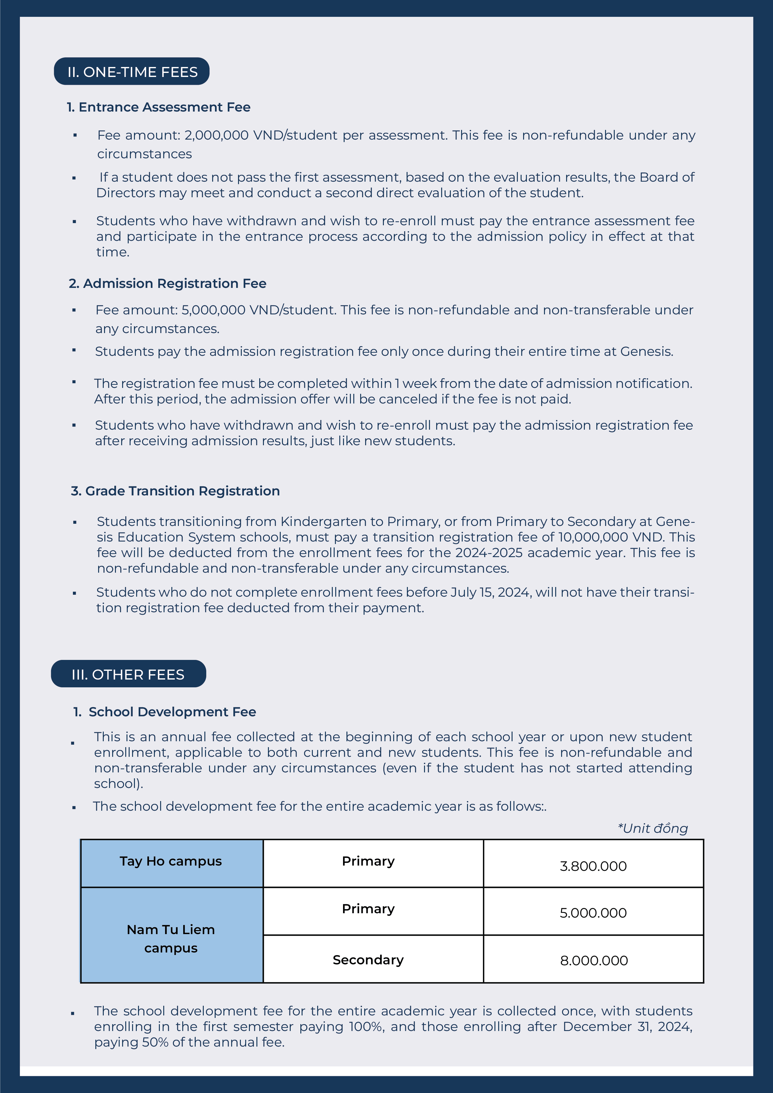 Financial regulations and fee schedule Genesis K-12 school system Academic Year 2024 – 2025 30/09/2024 Biên tập: Ban Biên tập Financial regulations and fee schedule Genesis kindergarten Academic Year 2024 – 2025 Explore the loving home through “A friend’s house visit” with Genee