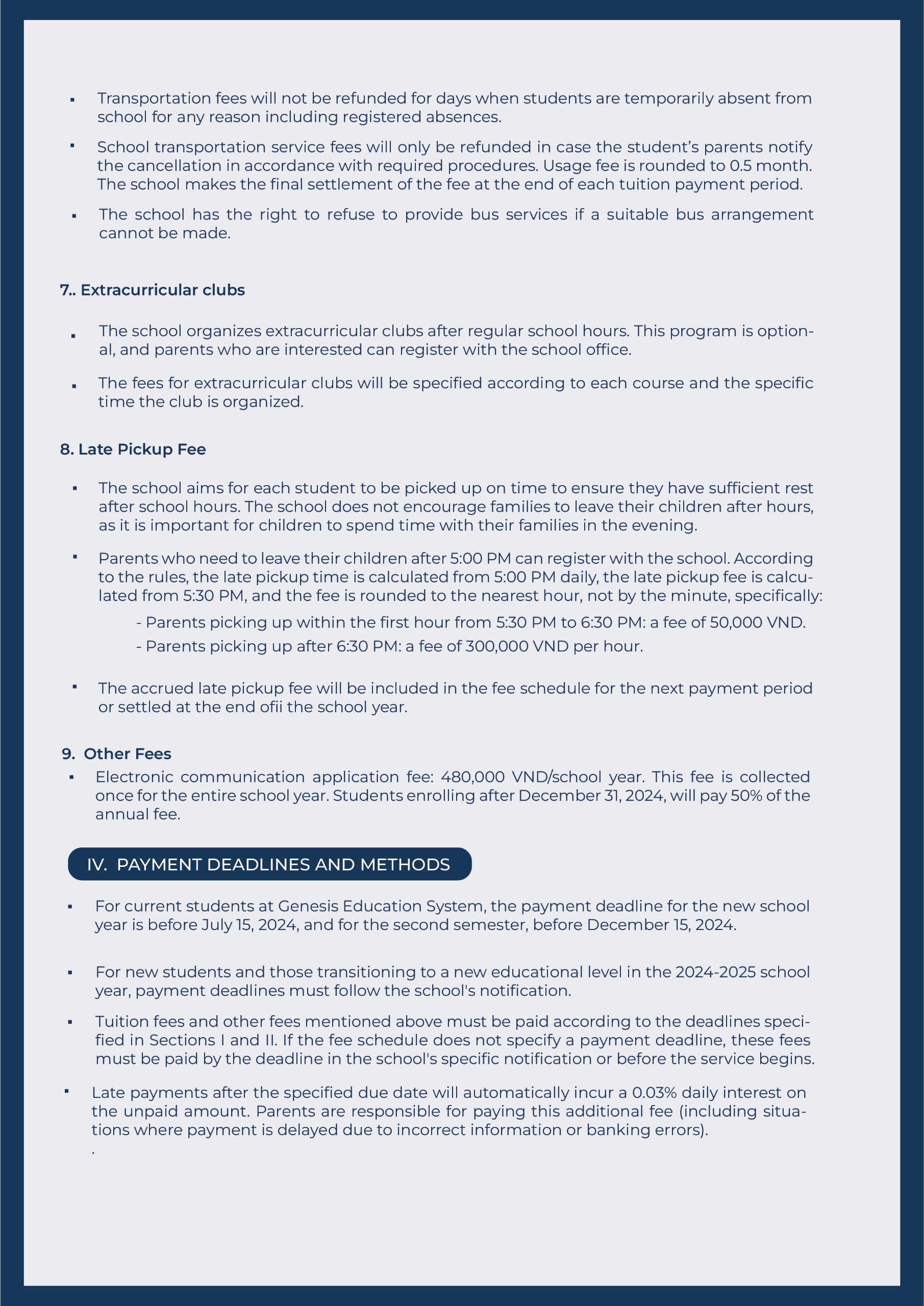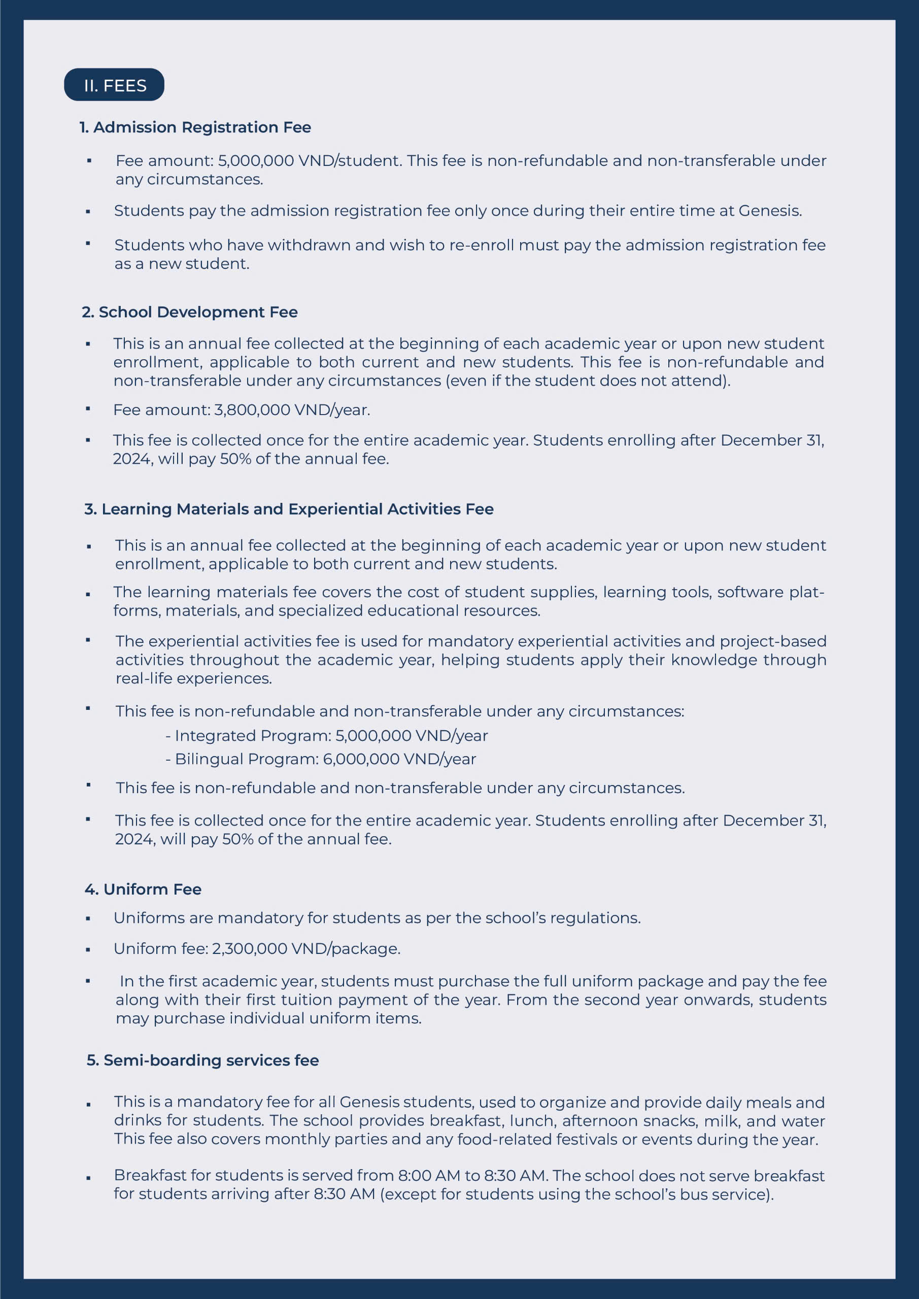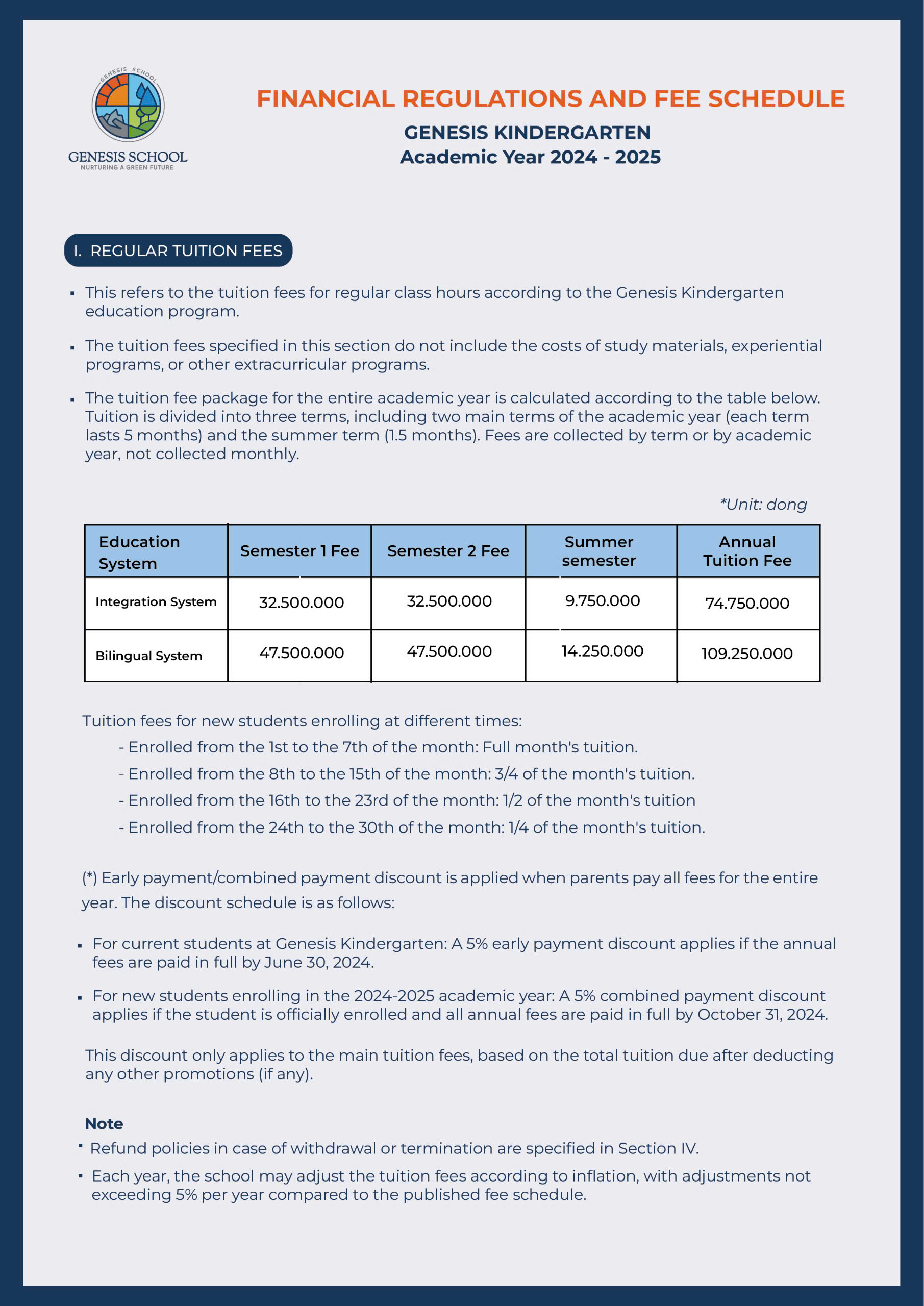 Financial regulations and fee schedule Genesis kindergarten Academic Year 2024 – 2025 30/09/2024 Biên tập: Ban Biên tập Academic pathway Financial regulations and fee schedule Genesis K-12 school system Academic Year 2024 – 2025