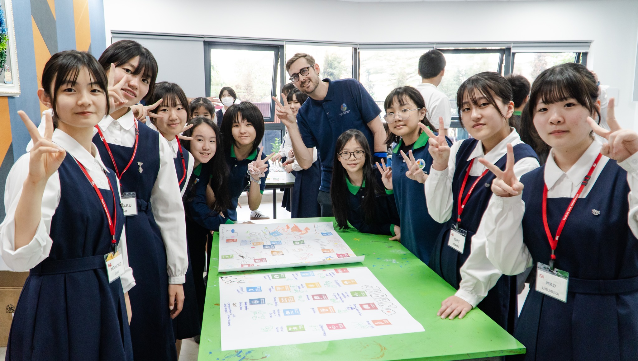 In the afternoon, students from both schools delved into SDGs, environmental topics, technological innovation, and cross-cultural dialogue. They analyzed issues, shared perspectives, and proposed solutions together. Their completed posters became a clear reflection of global-minded thinking shaped within a diverse, collaborative community.