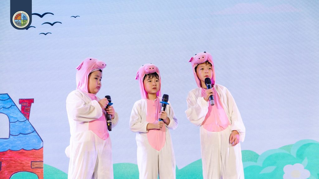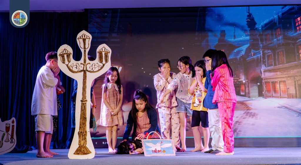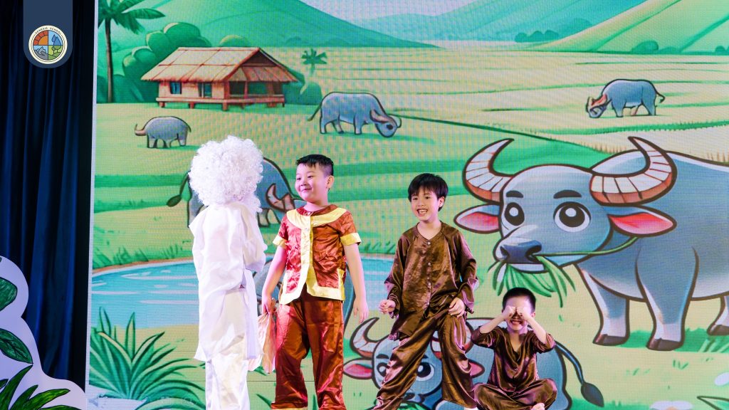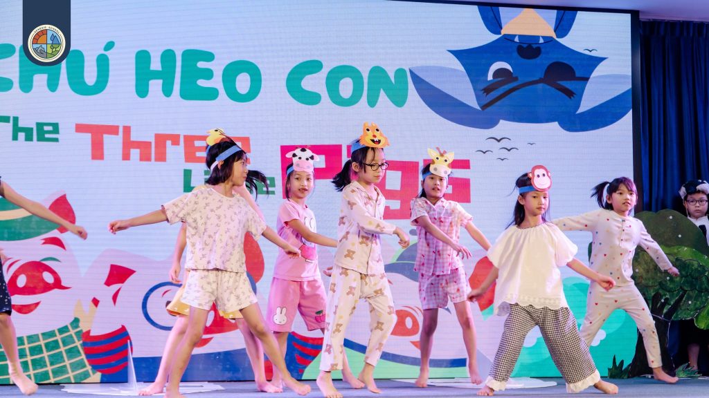 Five performances from Grades 1 to 5 breathed new life into timeless stories: Thằng Bờm (Musical), The Three Little Pigs (Dance theater), The Little Match Girl (Dramatic tableau), The Adventures of Cricket (Play), and Hansel and Gretel (Puppet show).