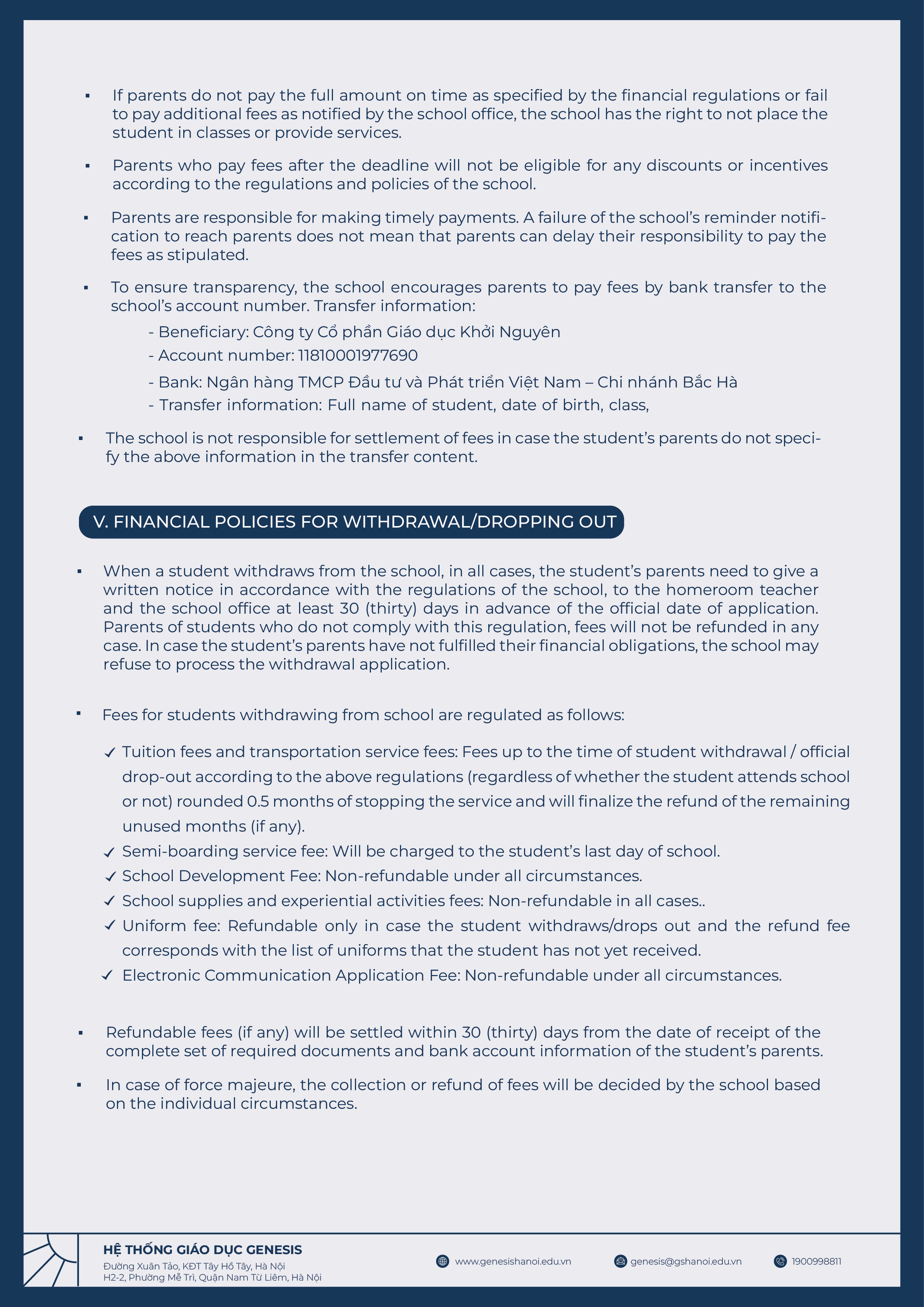 Financial regulations and fee schedule Genesis K-12 school system Academic Year 2024 – 2025 30/09/2024 Biên tập: Ban Biên tập [Cơ sở Nam Từ Liêm] Giờ học đặc biệt về sự kiên trì [MN] Học cách quý trọng bản thân qua những câu chuyện văn học