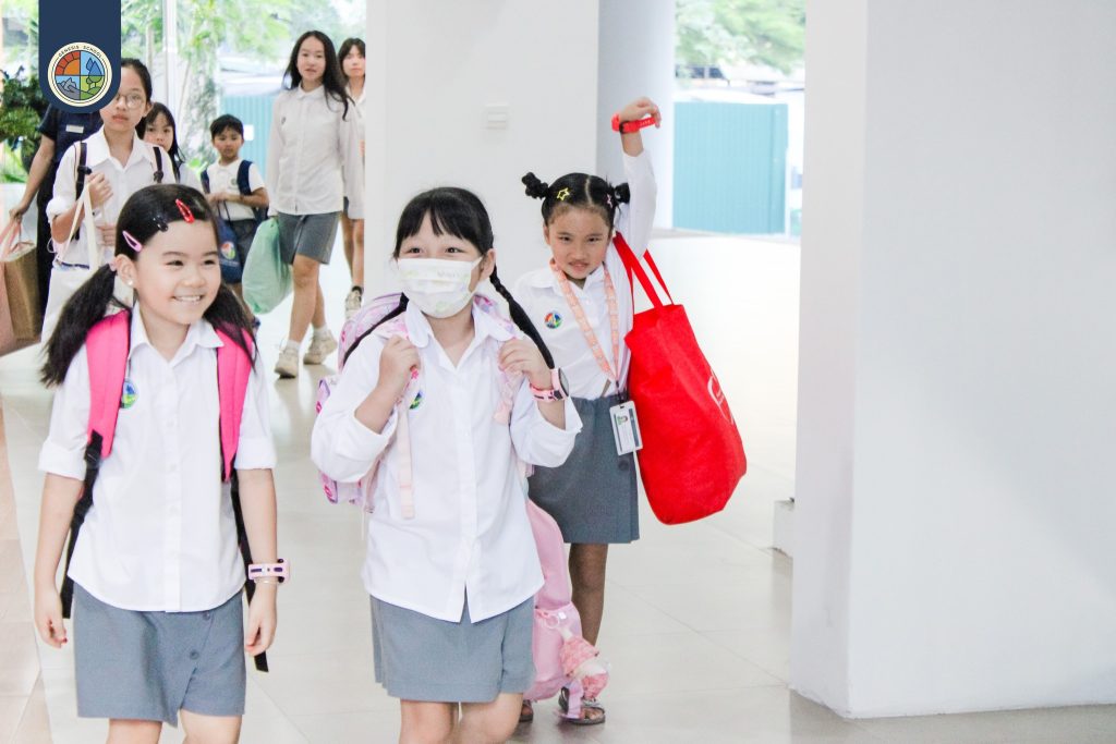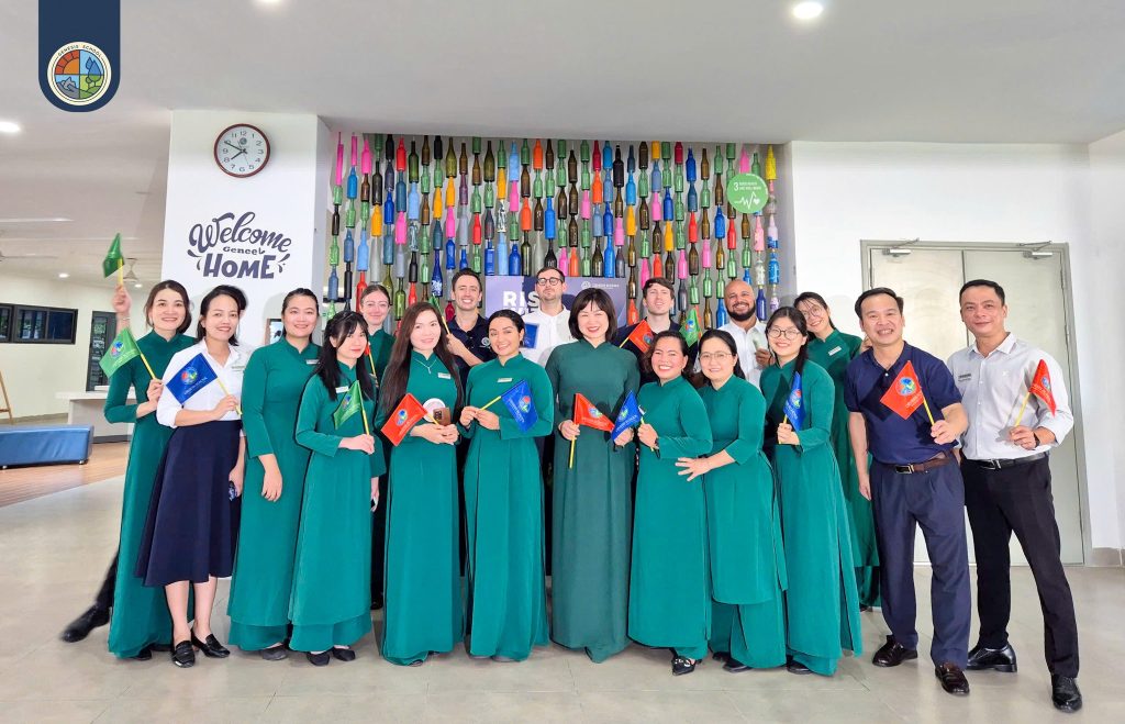 Từ sớm, cổng trường Genesis Hà Nội đã vang tiếng nhạc và tiếng cười giòn tan. Thầy cô và Ban giám hiệu đứng dọc hai bên cổng, chào đón từng Genee trở lại sau mùa hè đầy trải nghiệm. Những nụ cười, những vòng tay ôm và lời chào thân quen đã biến buổi sáng hôm nay thành khoảnh khắc háo hức khởi đầu cho một hành trình mới.