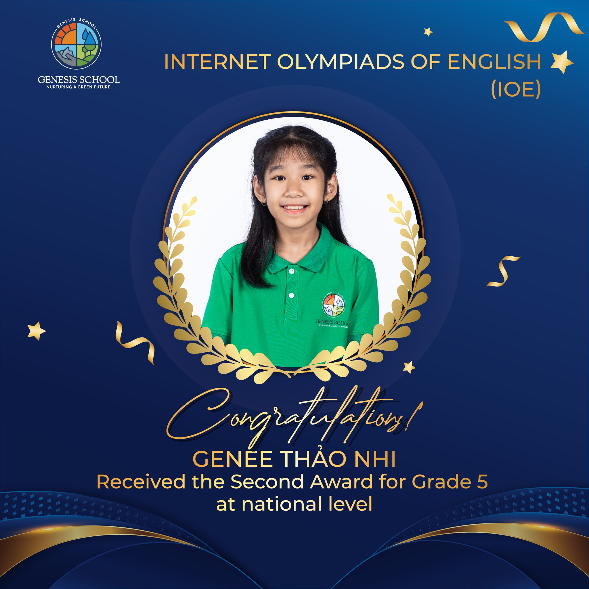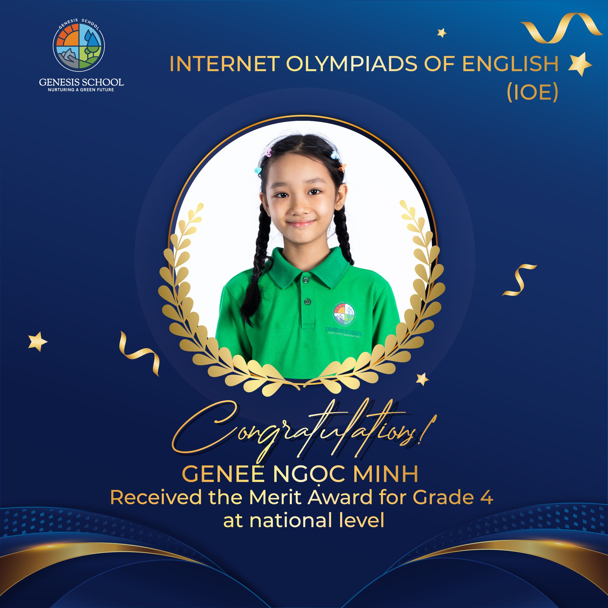 Ở Kỳ thi Olympic tiếng Anh IOE cấp Quốc gia, ba Genee đã gặt hái kết quả đáng tự hào. Với khả năng phản xạ nhanh, nắm vững ngữ pháp và giao tiếp linh hoạt, các bạn không chỉ chinh phục đề thi mà còn thể hiện sự trưởng thành rõ nét trong hành trình học tập tiếng Anh. Những kỹ năng ấy được hình thành từ quá trình thực hành đều đặn mỗi ngày trong môi trường học sáng tạo và giàu tính ứng dụng tại Genesis.
