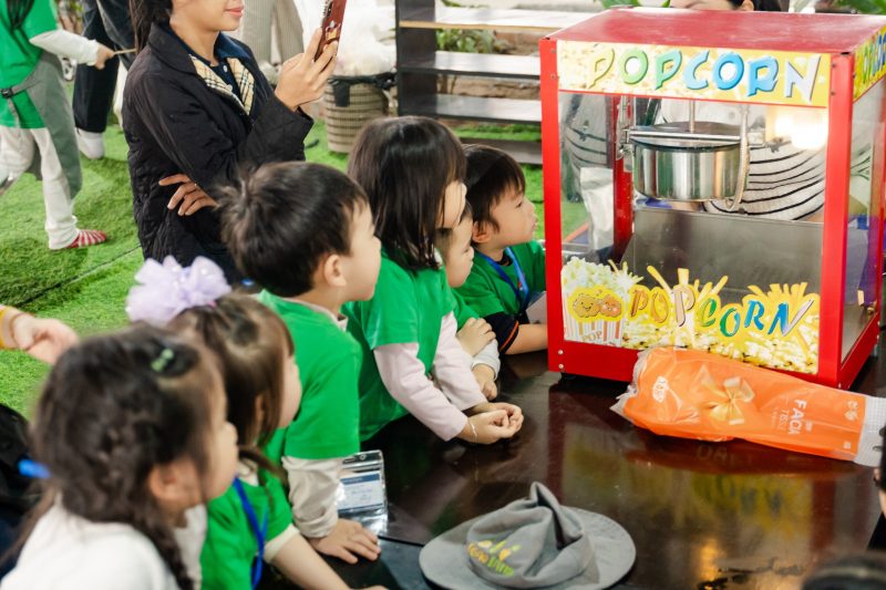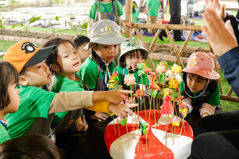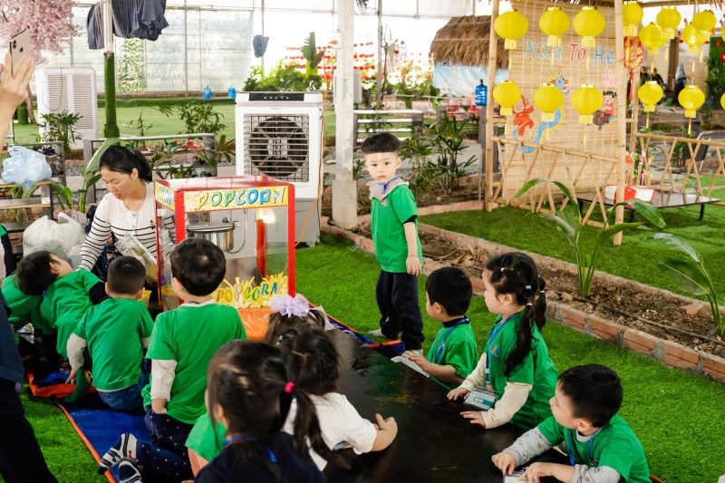 Có những bàn tay nhỏ lần đầu chạm vào đất, háo hức thu hoạch nông sản. Có ánh mắt tròn xoe khi cho thỏ, dê, gà rụt ăn hay chạy theo đàn chim, cá koi. Có tiếng cười giòn tan bên bếp nướng ngô, khoai, bên trò chơi kéo co, gánh lúa, đi cầu khỉ.