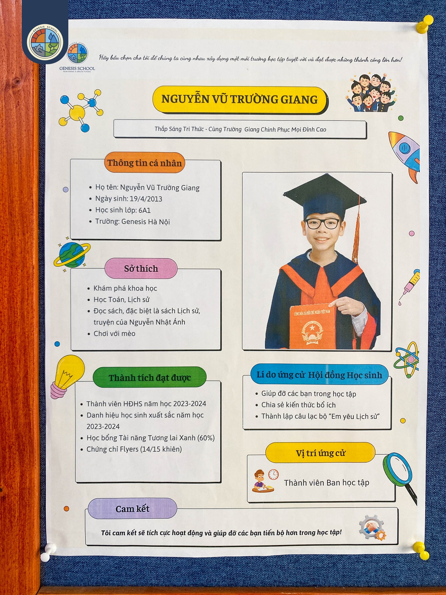 Mùa tranh cử sôi động của Hội đồng học sinh đã chính thức bắt đầu tại Genesis! Đây là cơ hội tuyệt vời để các Genee tại cơ sở Tây Hồ và Nam Từ Liêm thể hiện tiếng nói của mình, đại diện cho học sinh toàn trường và góp phần xây dựng một môi trường học tập tích cực, sáng tạo.