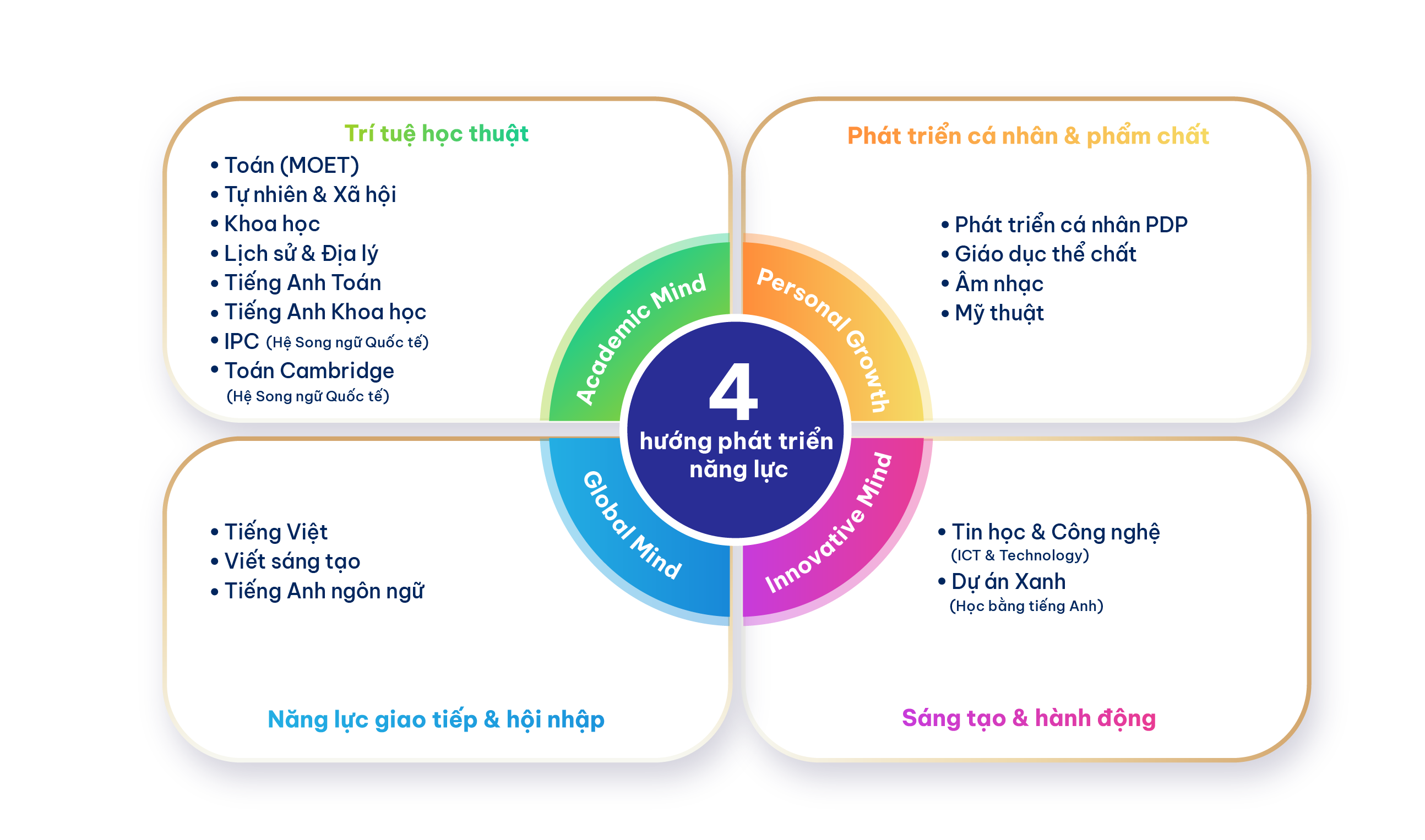 - Chương trình thiết kế riêng biệt: Dự án Xanh, Viết sáng tạo, Toán tư duy