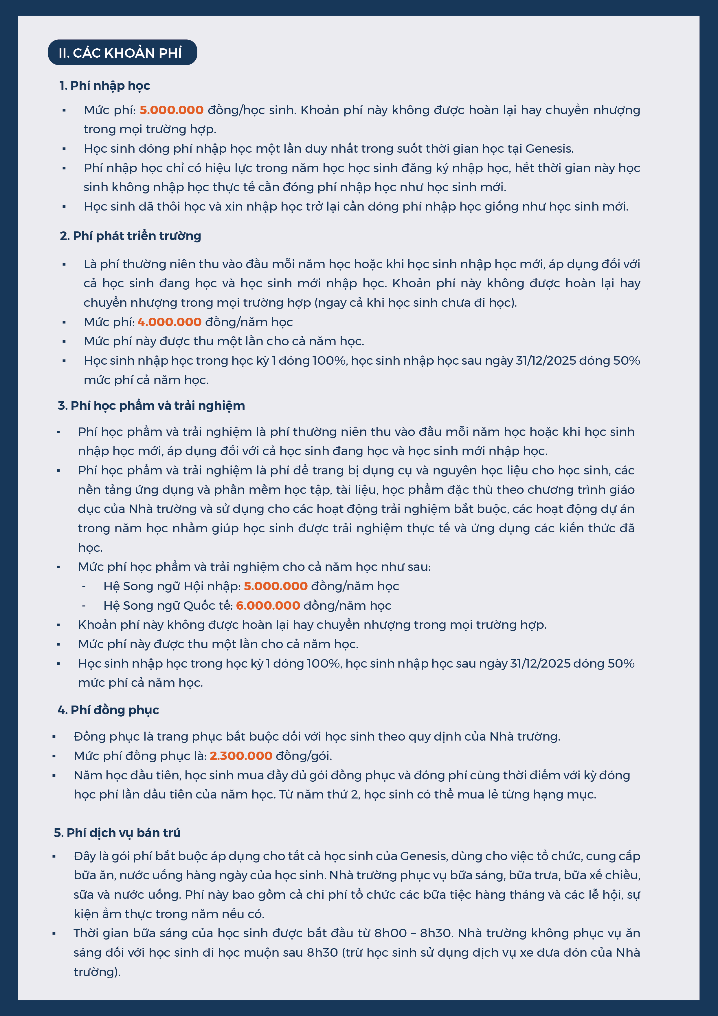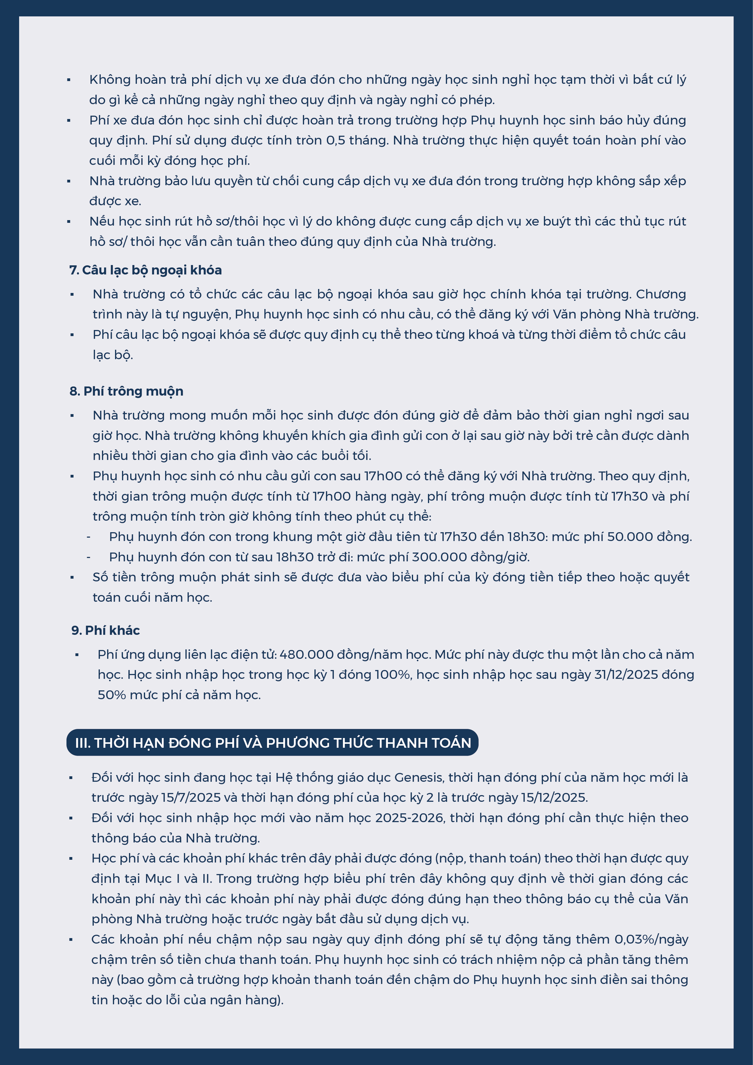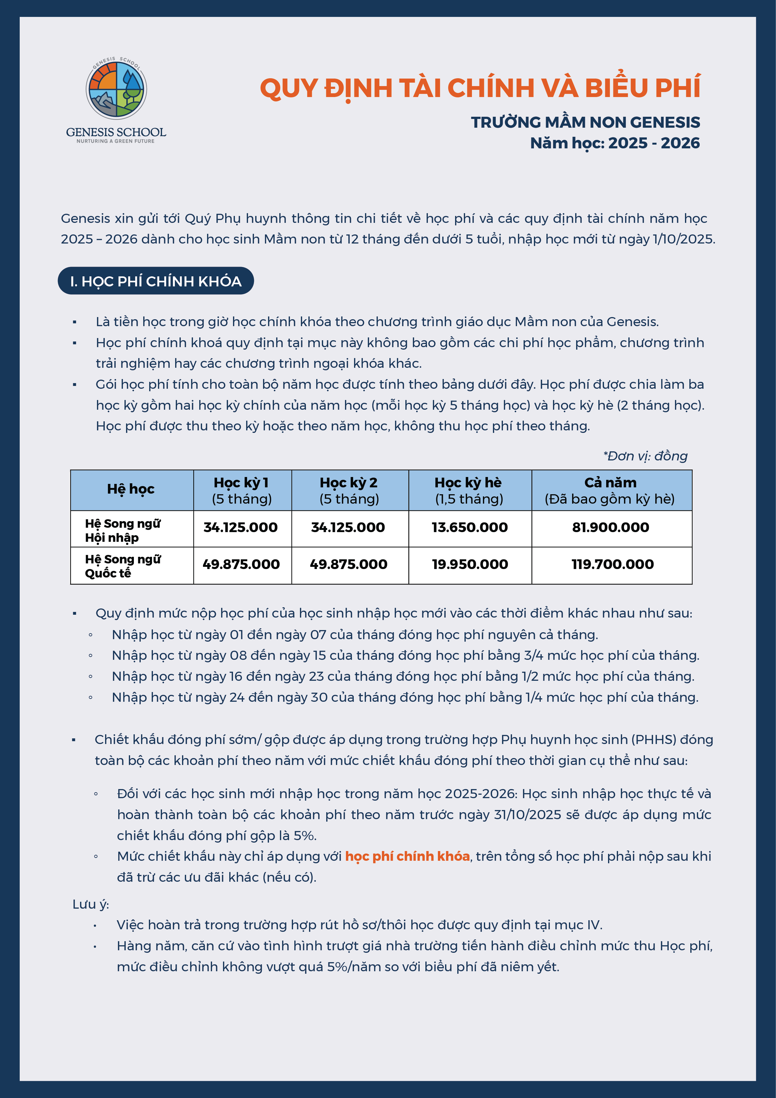Quy định tài chính và biểu phí trường Mầm non Genesis năm học 2025 – 2026 13/05/2025 Biên tập: Ban Biên tập Học sinh Genesis – những vị khách đầu tiên trải nghiệm chương trình giáo dục lịch sử “Một thời hoa lửa” [Cơ sở Nam Từ Liêm] Buổi chiều so tài và kết nối tại Tuần Lễ sách