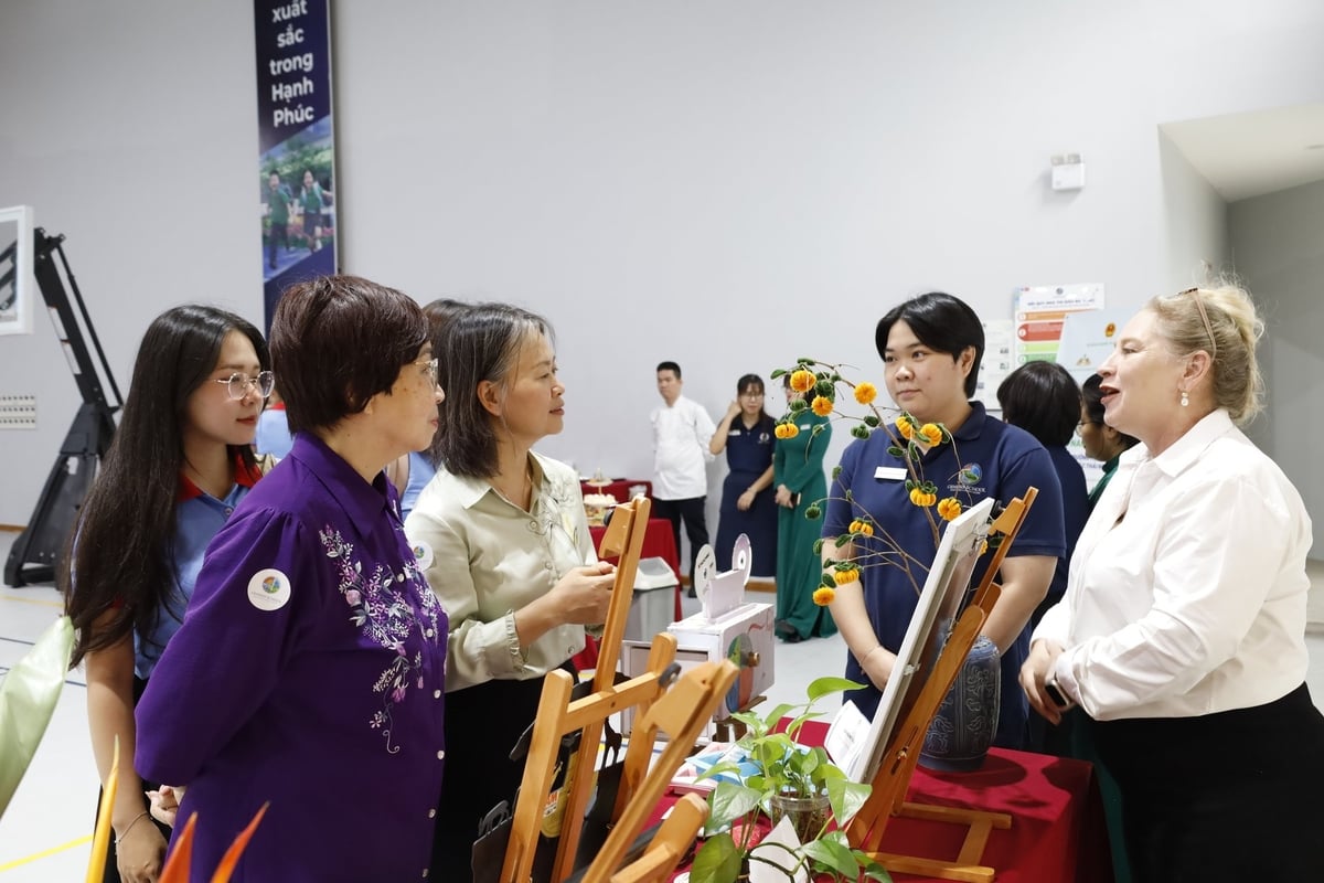 Chiều 19/9, đoàn đại biểu gồm trường học, chuyên gia, doanh nghiệp, tổ chức quốc tế đã tham quan trường Genesis, tìm hiểu kiến trúc xanh, vườn sinh thái và các sản phẩm tái chế.