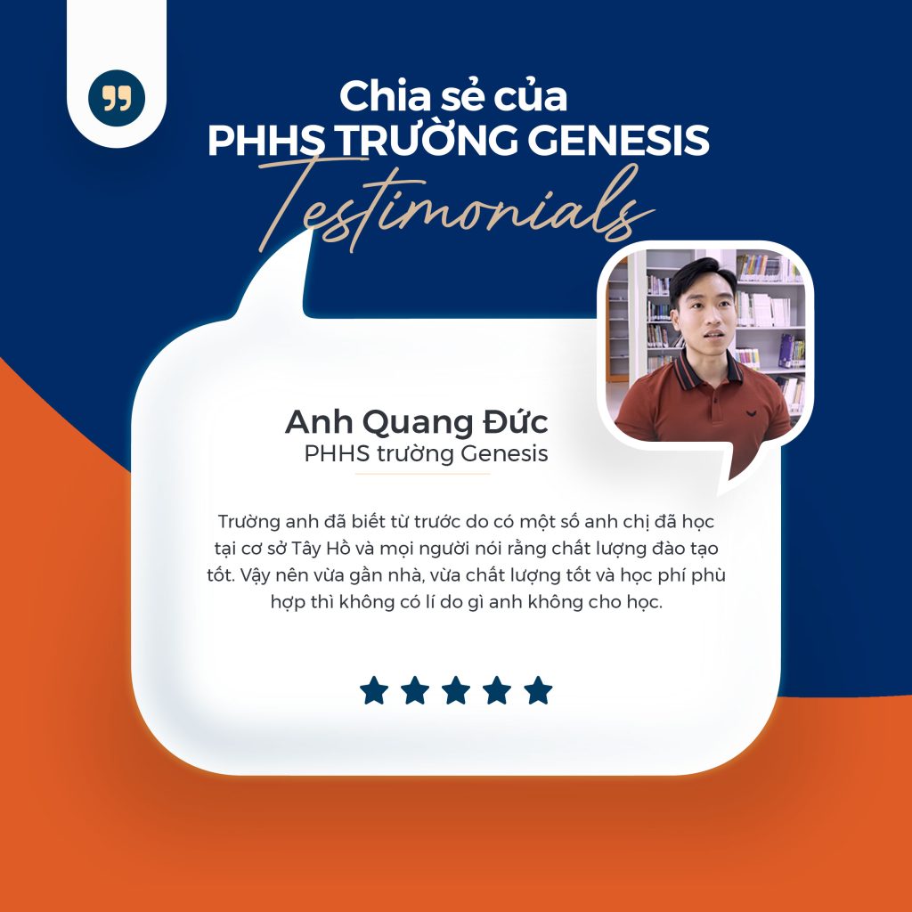 Năm học 2026-2027, Genesis tổ chức tuyển sinh học sinh có độ tuổi tương ứng với từng cấp học như sau: